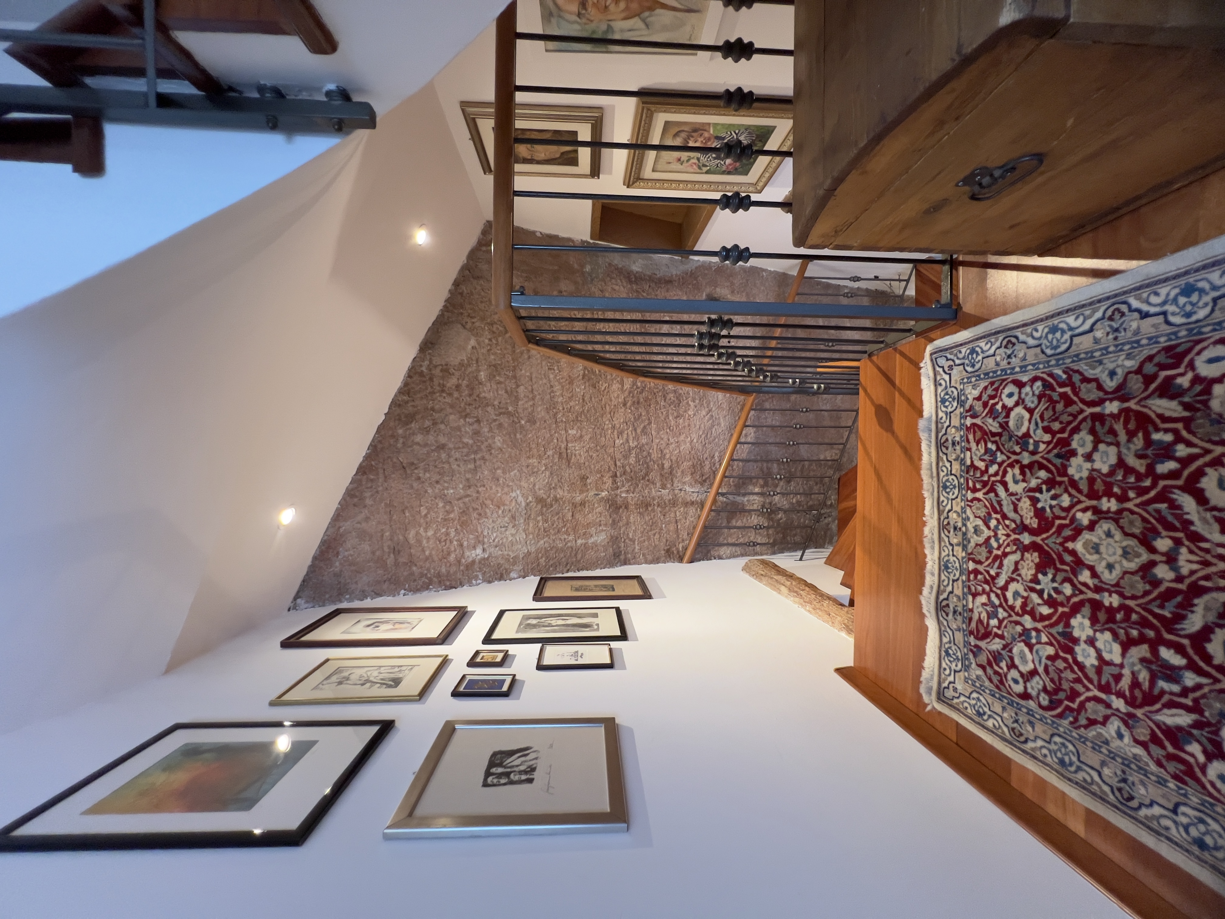 Attraverso la scenografica scala finemente scolpita nella pietra si accede al primo piano, dove si apre un magnifico salone, luminoso e rappresentativo. La sua atmosfera elegante e il suo fascino unico invitano a soffermarsi, rendendolo il cuore raffinato di questo livello.