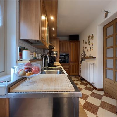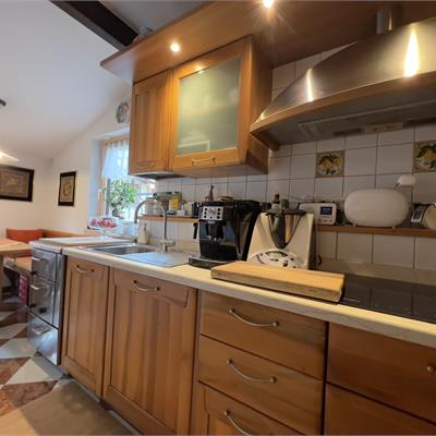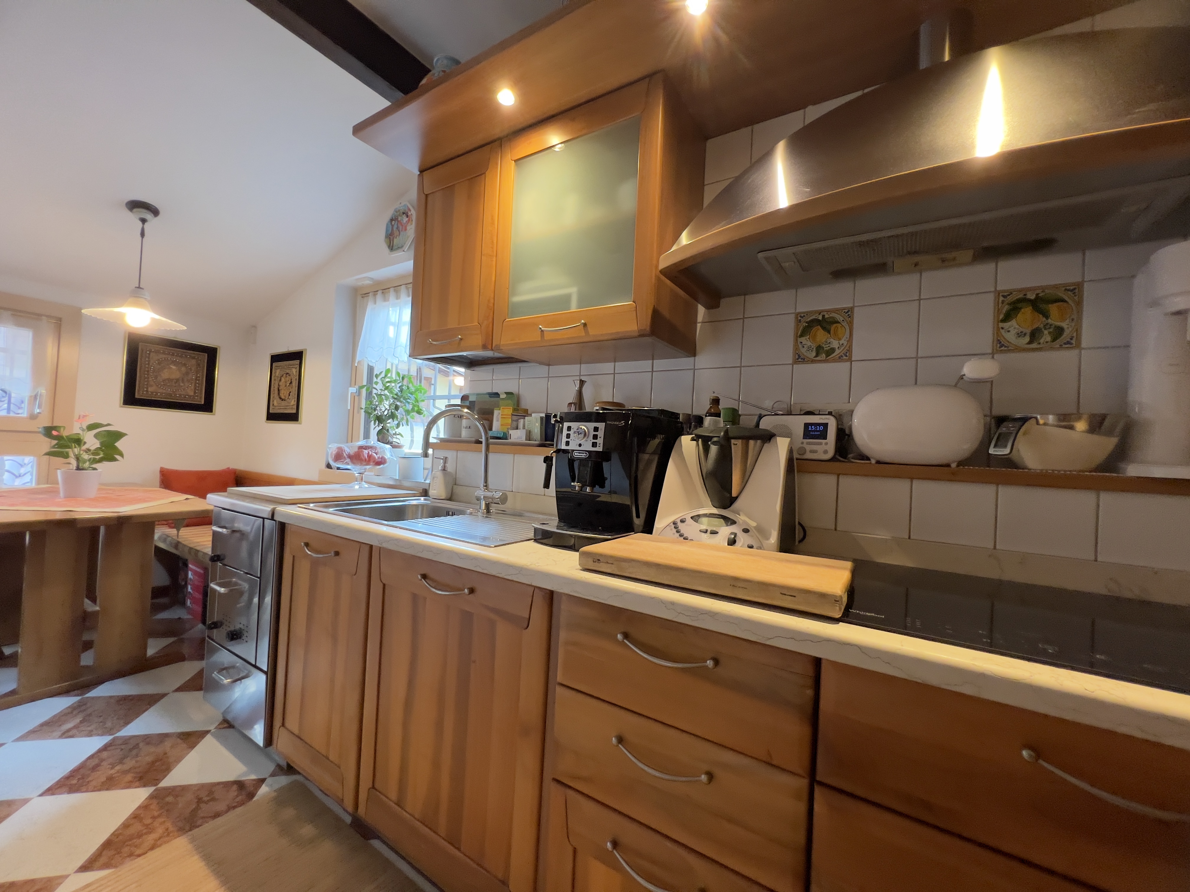 Al primo piano si trovano inoltre una cucina separata con una zona pranzo molto accogliente e un tradizionale forno a legna, oltre a un bagno completo.