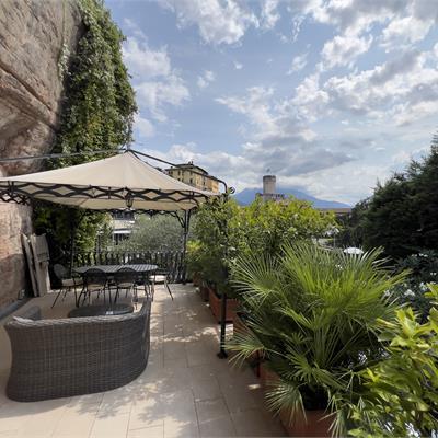 Inoltre, al primo piano si trova una terrazza signorile che offre una vista ampia e completamente libera sul centro storico di Trento e sul Castello del Buonconsiglio.